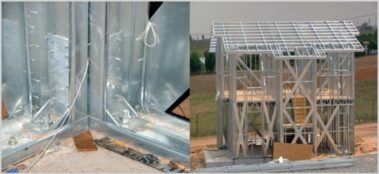 Tevens speelt de wijze van het opbouwen van de casco’s een rol. Bij traditionele bouw is het heel normaal dat we een prefab betonvloer “los” op een gemetselde wand leggen. De zwaartekracht zorgt ervoor dat de vloeren blijven liggen, totdat de aarde gaat beven. Bij staalframe worden alle constructieve elementen vanaf de fundering tot de nok aan elkaar vastgeschroefd zodat bij aardbevingen de onderdelen daar blijven waar we ze willen hebben. En mocht er onverhoopt ooit toch iets helemaal misgaan……..de overlevingskansen bij het instorten van een staalframe zijn veel groter dan in een stenen casco.